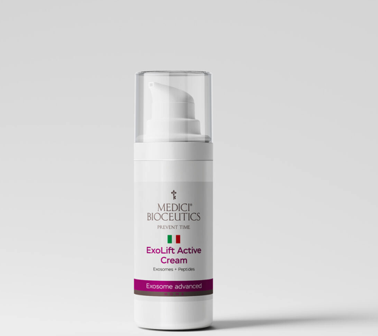Активные ингредиенты: экзосомы, пептиды, коллаген, эластин, аминокислоты, фосфолипиды, гиалуроновая кислота, глюконолактон, кокосовое масло, масло ши, масло арганы, витамин С, витамин Е, растительные экстракты